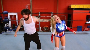 INTERGENDER EXTREME WRESTLING Episode 2! In HD! Our second IEW episode features the seductive cheerleader Angela as she takes on the masked lucha wrestler Lobo! Everyone knows Angela likes to use her sex appeal to distract her opponents, but Lobo falls for it hook line and sinker--and soon Angela is completely humiliating the once-proud warrior! Angela subjects the surprised Lobo to various humiliating wrestling moves, and even sexually humiliates him!! So Lobo does what any self-respecting hombre would do: he HIRES an even TOUGHER bitch, Karlie Montana, to take Angela out! Angela is no match for Karlie, as "The Satanic Ballerina" completely dominates her! Lobo and Karlie double-team Angela for a while, punishing her pussy and her belly and breasts, until she is completely helpless. Then Karlie leaves so that Lobo can extract his full revenge! Lobo dominates the completely weakened Angela, subjecting her to punches, low blows, back breakers, breast attacks, and even the dreaded "kung pow finger strike to the pussy!" Angela is utterly destroyed, and can offer virtually no resistance once Lobo strips her and bends her over so he can have his way with her!!! Revenge is sweet!!!